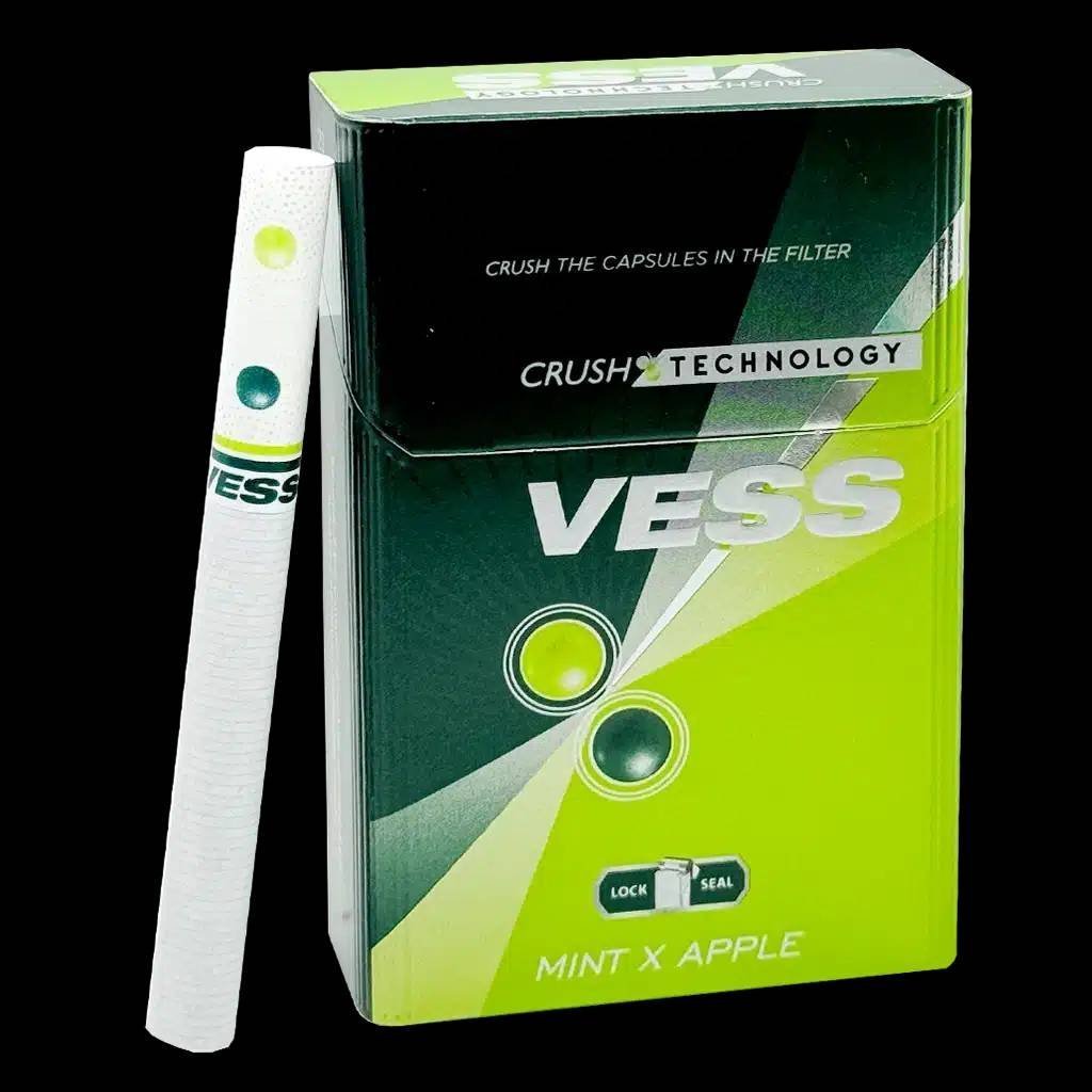 บุหรี่นอก Vess แอปเปิ้ลมิ้น (2 เม็ดบีบ) มอบประสบการณ์การสูบที่สดชื่นด้วยกลิ่นหอมของแอปเปิ้ลและมิ้นท์ ผสมผสานความเย็นอย่างลงตัวโดยไม่รู้สึกหวานเกินไป ขนาดมวนปกติและใบยาคุณภาพดีทำให้การสูบเป็นเรื่องง่ายและสะดวกสบาย บุหรี่นำเข้าที่ได้รับความนิยมและมีความหายากในตลาด เหมาะสำหรับผู้ที่ต้องการสัมผัสความสดชื่นและกลิ่นหอมอย่างแท้จริง บุหรี่vess